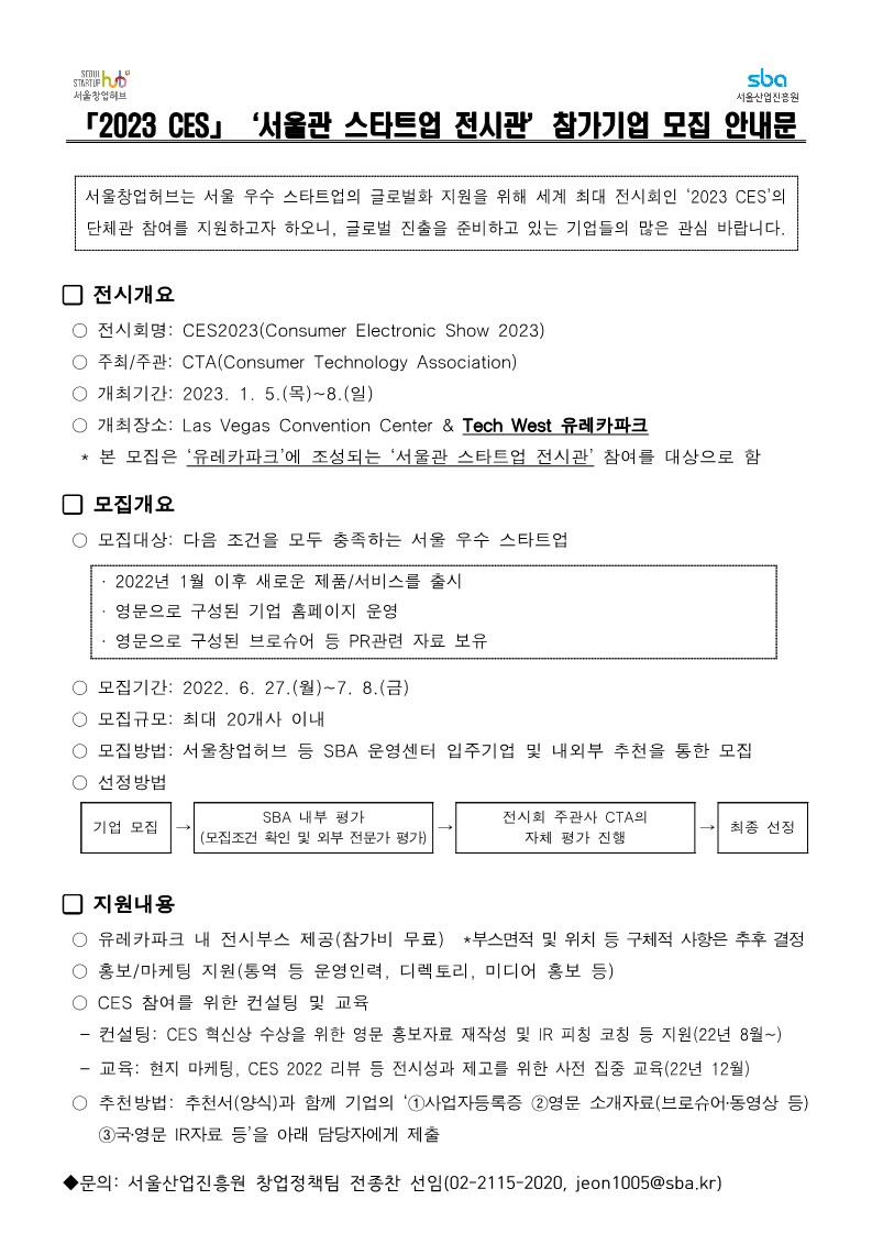 [Çù·Â»çÈ«º¸] ¼¿ï»ê¾÷ÁøÈï¿ø CES 2023 ½ºÅ¸Æ®¾÷ Âü¿©±â¾÷ Ãßõ¾È³»