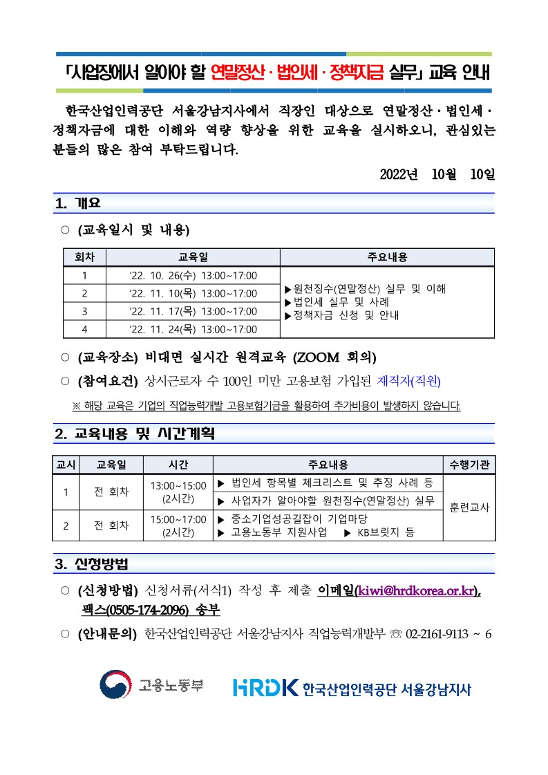 Çѱ¹»ê¾÷Àη°ø´Ü ¡¸¹ýÀμ¼ ¹× ¿øÃµÂ¡¼ö ½Ç¹«¡¹ ±³À° ¸ðÁý °ø°í